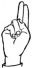 На ћирилици написано РУЖИЦА КОШУТАРАЦ састоји се из 15 слова [?]. Исписано ћириличном једноручном азбуком за глувонеме: